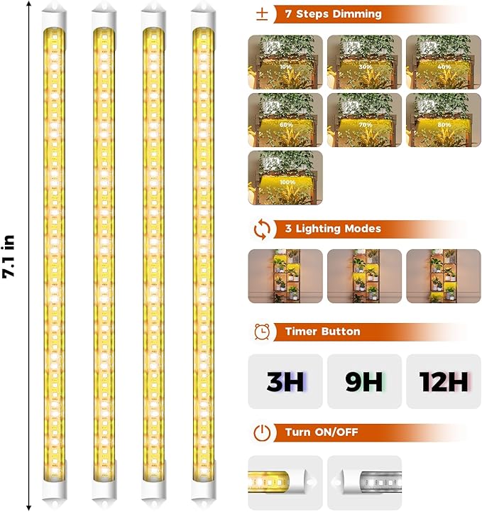 - Plant Stand with Grow Light: The plant light contains 3 supplemental light modes: 1. 48 leds warm white(3000k), only 3000k high uniform light ,like sunlight improve seeding growth ; 2. 48 leds Red (660nm): promote plant growth , flowering and fruit; 3. Red+ Warm White (380nm-780nm), Provide universal full spectrum which can meet the light conditions your plants need most in different stages