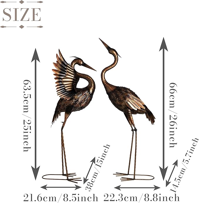 - 【Original Design】These metal crane statues feature a beautiful brass color that glimmer in the sunlight, adding a lovely touch to any decor