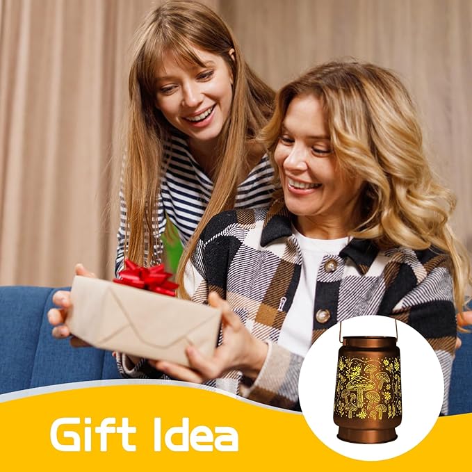Mushroom Solar Lanterns Outdoor Waterproof Garden Decor Birthday Gifts for Women Mom Grandma Metal Hanging Solar Lights Decoration for Outside LED Lanterns for Yard Patio Lawn Pathway Landscape