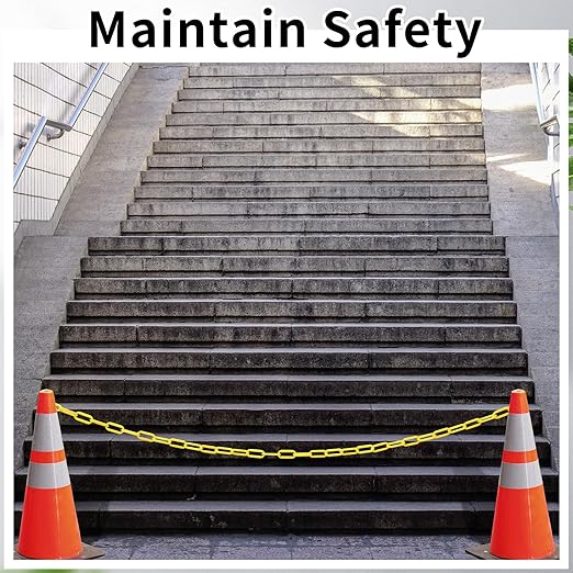 - Waterproof Plastic Material: the yellow safety chain is made of quality PP plastic, with good strength and smooth surface; If you need different lengths, plastic chains can be cut with garden shears