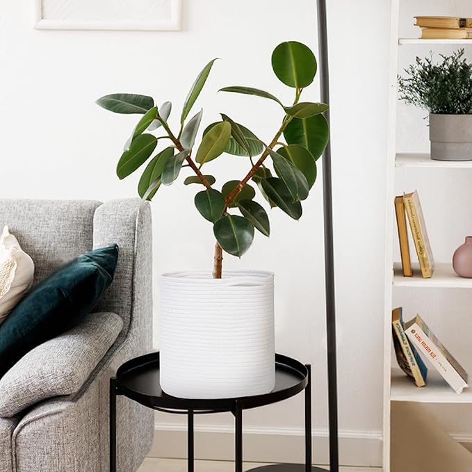 - Versatile: Perfect for both indoor settings, this woven rope plant basket enhances the beauty of tree pots, planters, and decorative flowers. Ideal for 7-10 inch pots. it can also be used for storing toys, shoes, towels, crafts, and other small items. Its round shape makes it a great decorative storage solution.