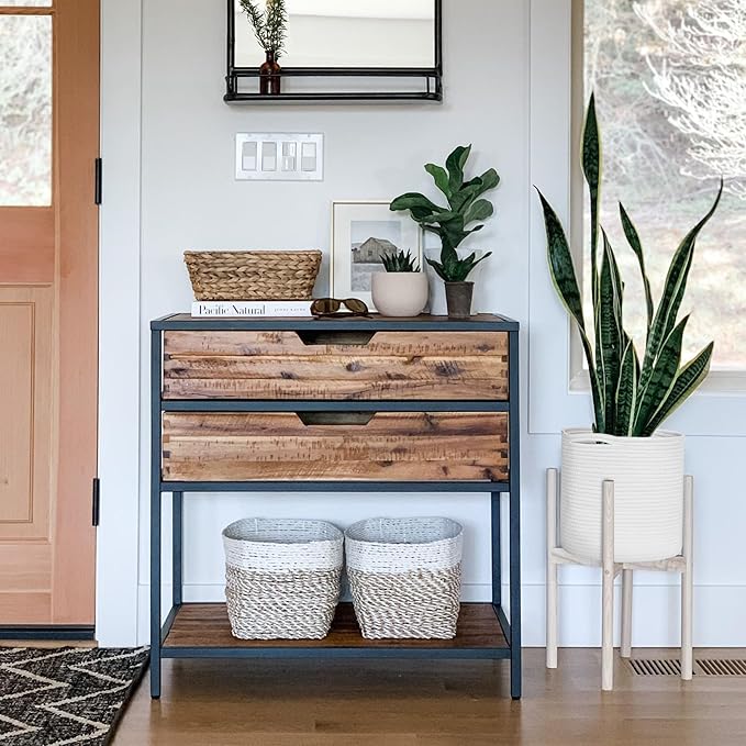 - Wicker Plant Stand and Pot Cover: The storage bin has a natural and minimalist vibe to elevate your plant decor. It works as as both a woven planter and a plant stand, keeping your space tidy and clean. The neutral pot cover adds a touch of greenery and makes the room feel more inviting.