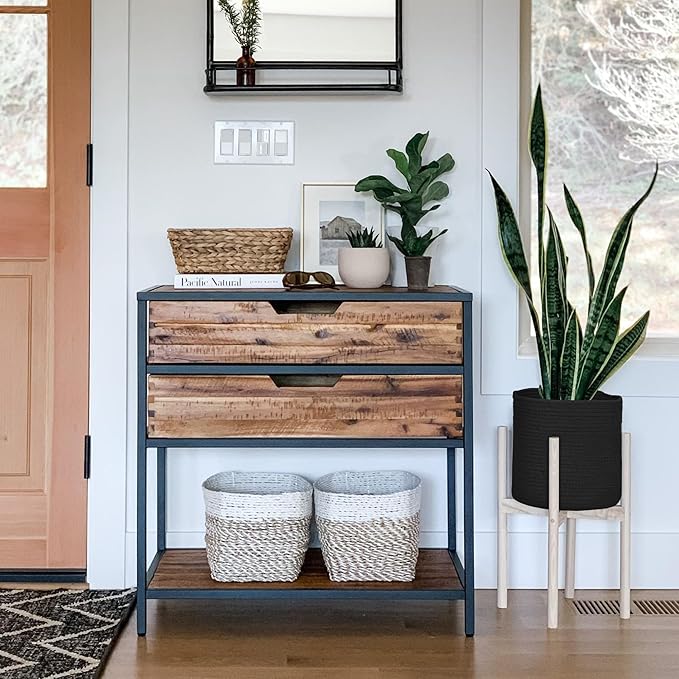 - Wicker Plant Stand and Pot Cover: The storage bin has a natural and minimalist vibe to elevate your plant decor. It works as as both a woven planter and a plant stand, keeping your space tidy and clean. The neutral pot cover adds a touch of greenery and makes the room feel more inviting.