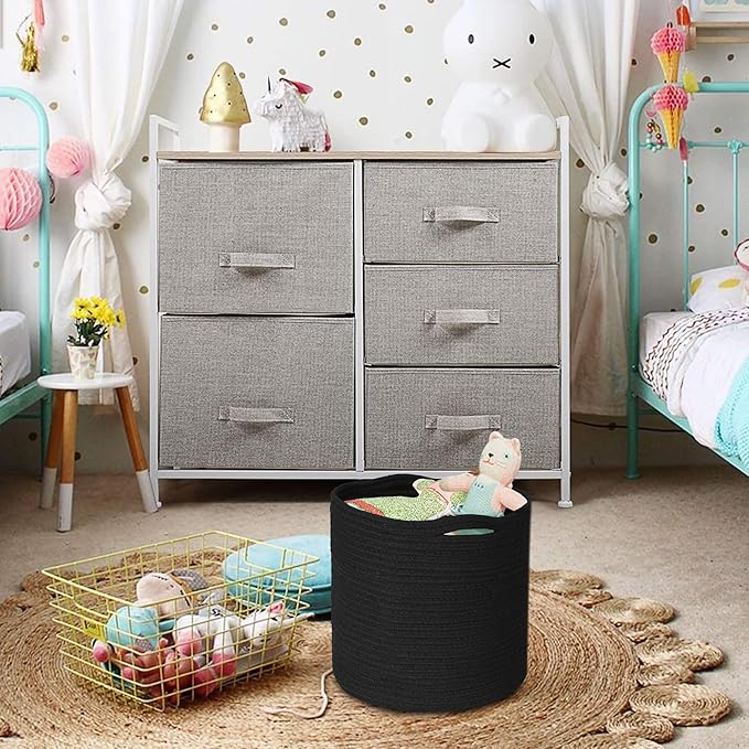 Cotton Rope Plant Basket, Woven Basket Planter for 10 inch Pot, Round Indoor Tree Pot Cover, Small Storage Bin Organizer, Modern Basket for Plants and Home Decor, 11”X11”, Black