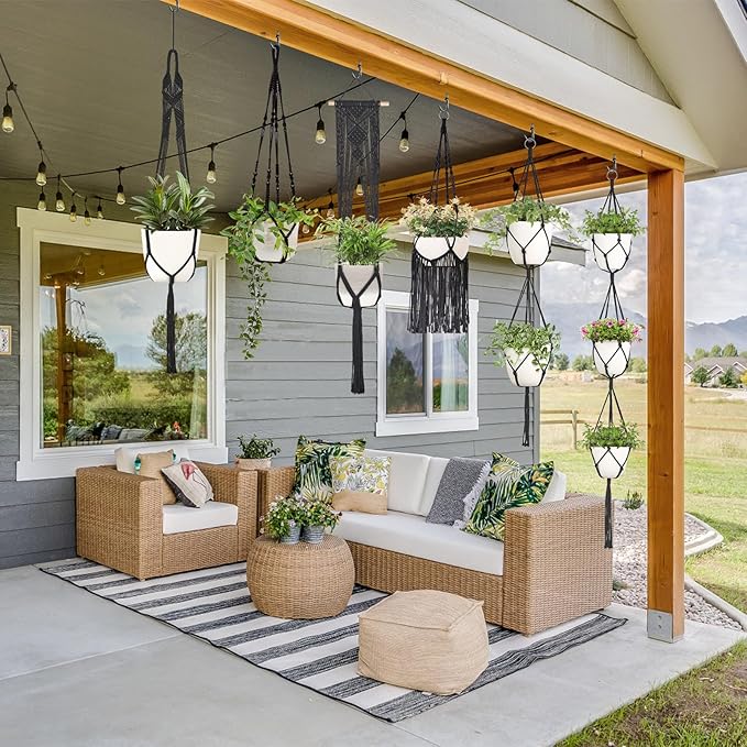 - Attractive Decor: Hanging plant holder can be hung on the walls, windows, balconies, living room, kitchen, hall, and patio, etc. Vertical hanging not only saves space, but also keeps your children and pets away from hanging plants and protects the plants