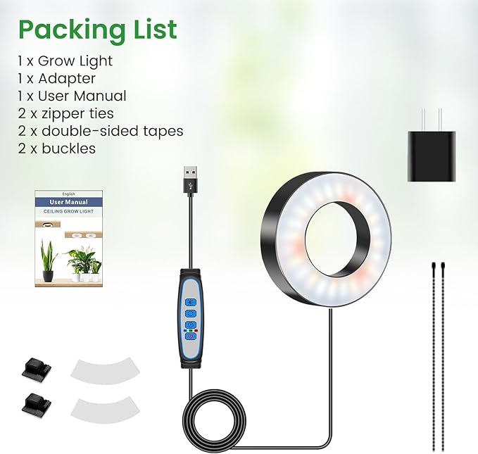- Widely Used and Versatile Design: With 5V1A adapter, 3.5 inch diameter small grow light is a reliable and effective solution for all your indoor gardening needs. also ensuring that your plants receive the right amount of light without the risk of burning. Suitable for all types of locations such as hangings, floor planters, succulents, cacti, and so on.