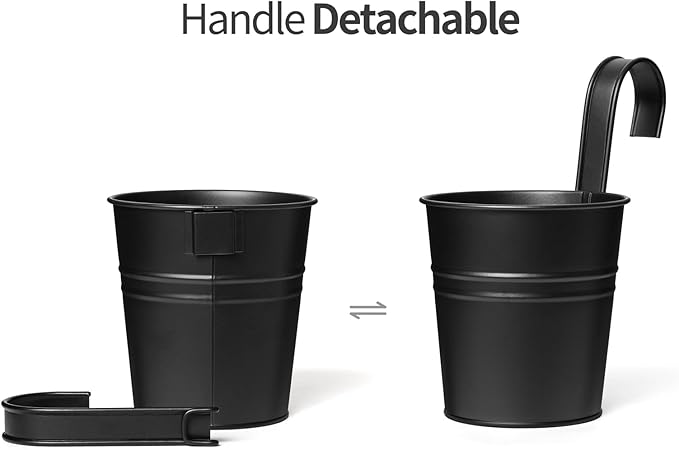 - These special metal bucket pot with an attached hook,can be hung on the railing, balcony, window, anti-theft net, trellis,fence,indoor or outdoor anywhere,also can be used as desktop