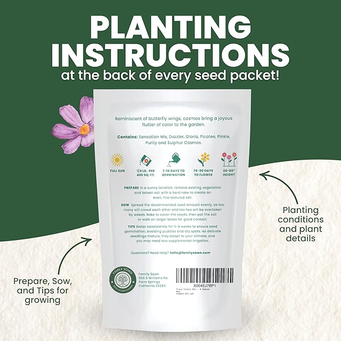 - GIFTABLE PACKAGING: Share the love of gardening with Family Sown's beautifully designed seed packaging. Crafted for freshness and ease, each pack includes simple planting instructions and a reusable zipper — an ideal gift for any nature-loving friend or family member.