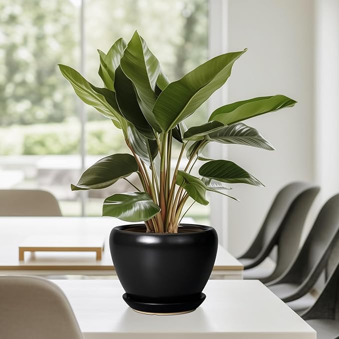 - 6 Inch Planter with Drainage Hole and Saucer: There is a drainage hole at the bottom of the ceramic plant pot, which can discharge excess water and benefit the growth of plants; the lightweight ceramic tray can keep your desktop clean