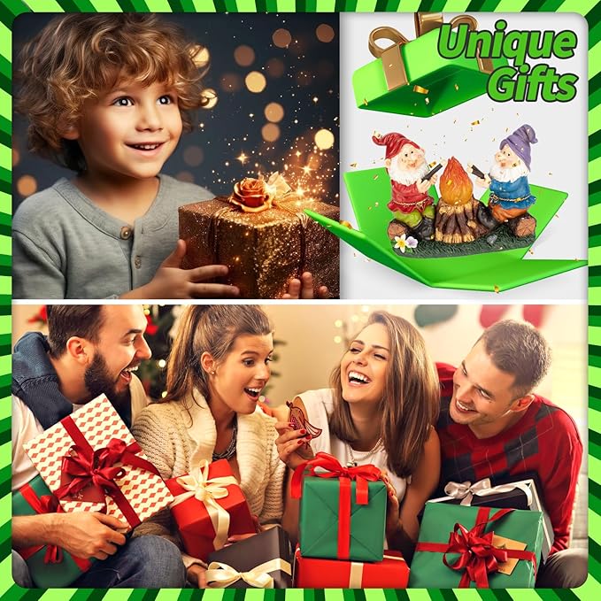 - [Exquisite Handicraft]: Every Garden Gnomes(size8.3 x 6.7x 5 inches) is meticulously hand-painted with vibrant colors, showcasing exquisite craftsmanship. Each part is crafted from long-lasting resin and adorned with UV-resistant paint, ensuring both the durability and high-quality finish of the statue