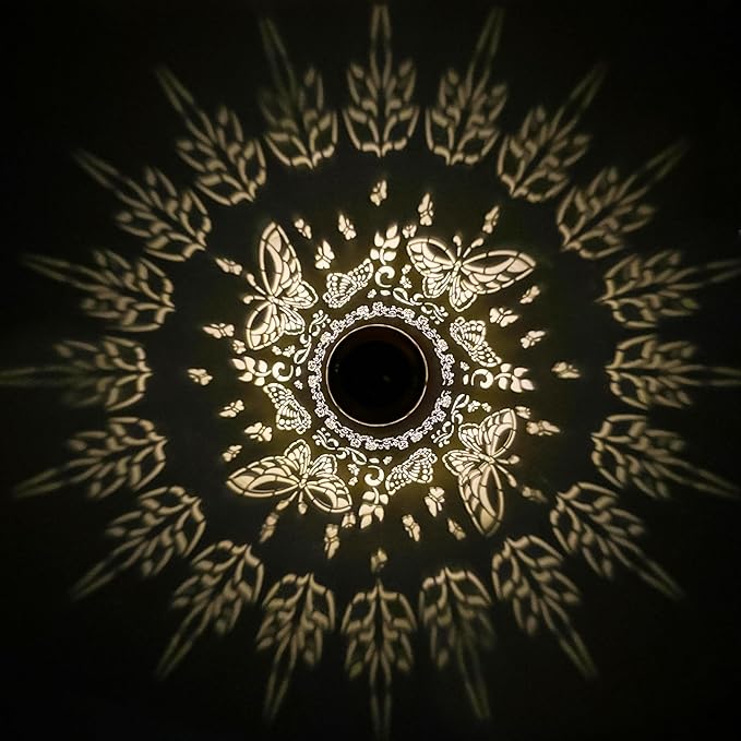 - 【Butterfly Decoration】The solar outdoor lantern is inspired by animal elements in nature. It projects bright butterfly patterns in the dark, creating a gorgeous and warm atmosphere and bringing vitality and fun to your garden. It adopts a gold-copper color and hollowed-out metal finish, presenting a retro look.