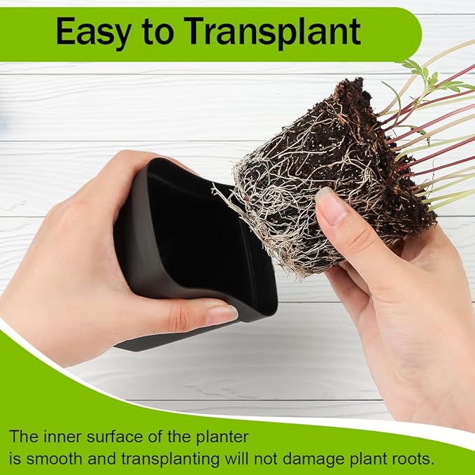 - 【Reusable Nursery Pots & Trays】Crafted from BPA-free plastic, ensuring safety for both users and plants. Made with flexible materials, these seedling pots have smooth surfaces and edges, minimizing root disturbance during transplanting and are easy to clean.