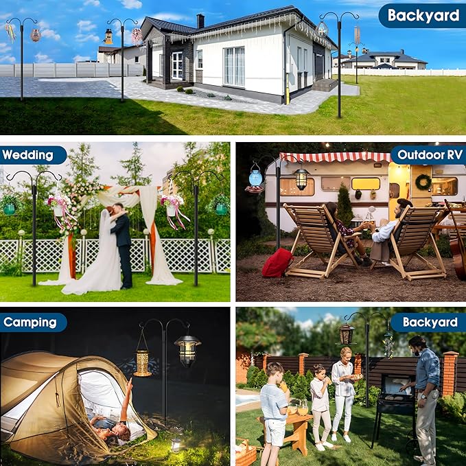 • Dual Hook Design: The double hooks are versatile and can hold multiple bird feeders, bird baths or flower pots, convenient for hanging decorative flowers and outdoor string lights, a practical and stylish embellishment in your garden.
