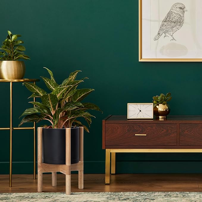 - A Complete Set: Minimalist plastic planter, combined with a sculptural, solid wood stand that match perfectly together and looks great in any home.