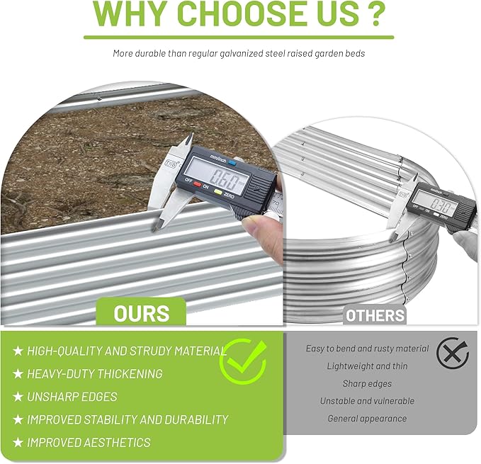 - HIGH-QUALITY MATERIALS: The product uses galvanized metals, which have better surface gloss than other painted metal plates and they are less likely to lose paint and color. We also use thicker metal plates which will better protect the soil and vegetables and will not easily cause product deformation and damage.