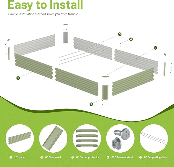 - START TO BUILT:this is made with size 8x4x1ft raised garden bed, it has everything you need for your garden, It can grow vegetables, fruits, plants, and herbs, and the panels has enough support to help them grow healthily, and there are a variety of splicing methods to choose from. Let's get start to build your own garden now.