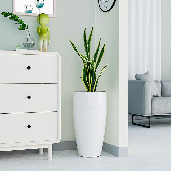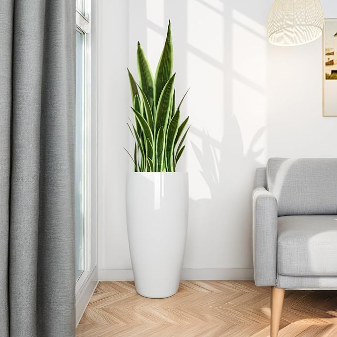 - MODERN DECOR: 24 inch planter is slim-ish, tall, and stable, adding stylish and elegant embellishment to front porch, patio, living room, deck, garden. Allow you to enjoy flower or plant and begin with a beautiful mood.