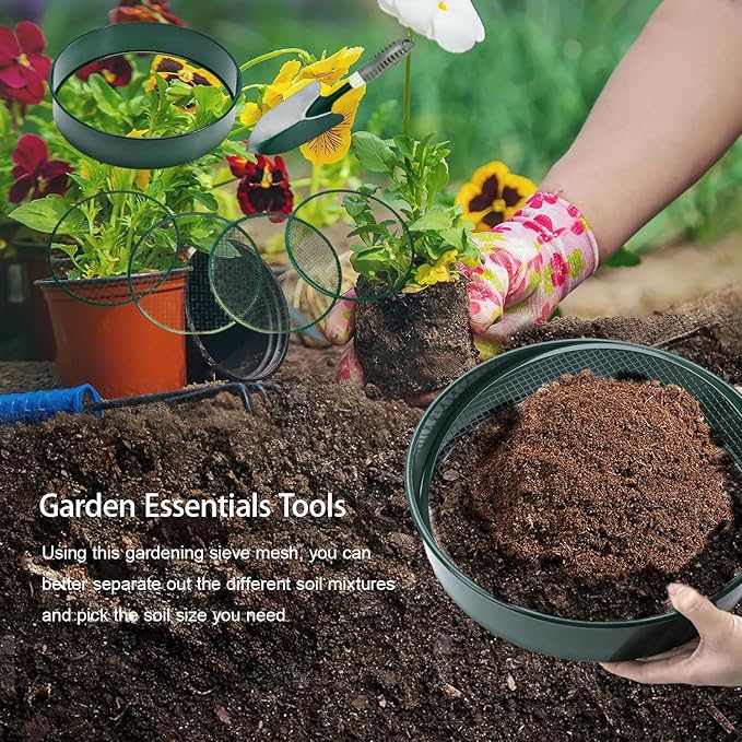 - 【Garden Essentials Tools】By using this gardening sieve mesh, you can better separate different soil mixtures and select the soil size you need. Good soil will enhance the absorption of minerals and water by the roots