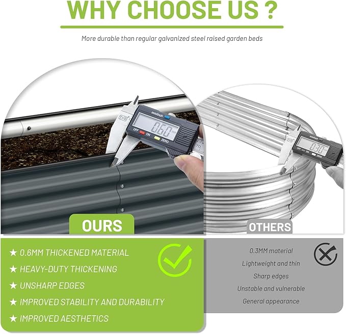 - HIGH-QUALITY MATERIALS: The product uses color-coated galvanized metals, which have better surface gloss than other painted metal plates and they are less likely to lose paint and color. We also use thicker metal plates which will better protect the soil and vegetables and will not easily cause product deformation and damage.