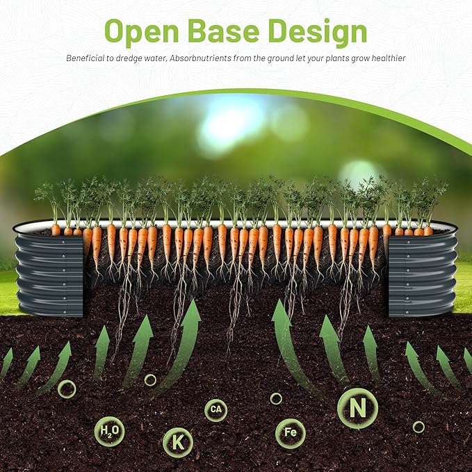 - OPEN BASE DESIGN: The open base design of the garden box allows the plant's roots to grow freely in the soil, accessing a wide range of nutrient systems, ensuring proper drainage, better aeration and healthier root systems, making the plants more active and yielding a good harvest.