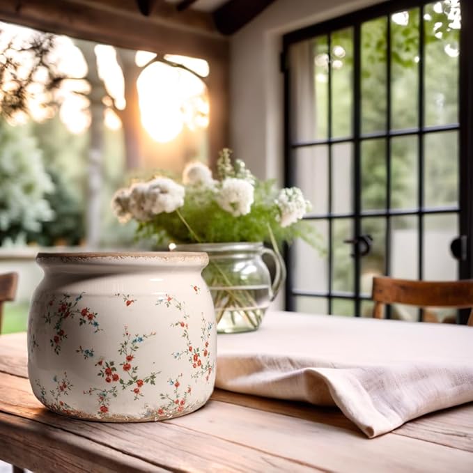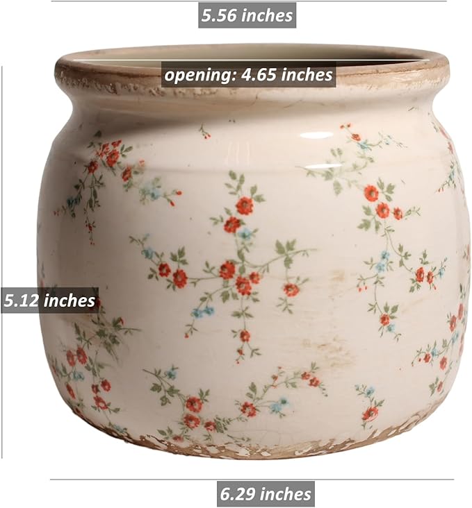 - VINTAGE FLOWER POT WITH DISTRESSED DETAILS: The slightly distressed pattern is designed to create a rustic, shabby chic aesthetic that adds character and warmth to your home décor.