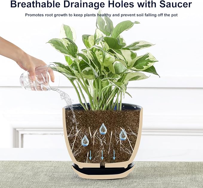 - Ceramic Plant Pots with Drainage Hole: Each small plant pot measures 3.5''W*2.8''H , which is the ideal for growing small and medium sized plants, such as succulents, snake plants, cactus, orchid and small flower. The flower pots has a central drainage hole and saucer to ensure adequate drainage and ventilation to avoid root rot, and include a 1.7 inch diameter mesh to prevent soil from falling out