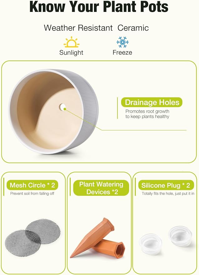 - Ensure your plants thrive with our plant watering devices. The included drainage holes and saucers of these durable ceramic planters allow for easy maintenance and plant health, making them ideal for indoor and outdoor use.