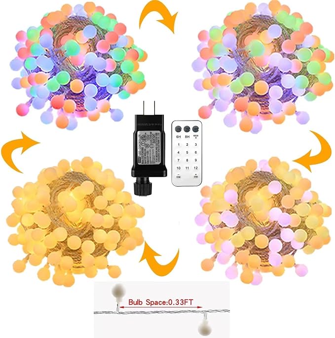 - Multicolor and warm white globe string lights: More color options for more scenarios.Create a warm and romantic atmosphere for you