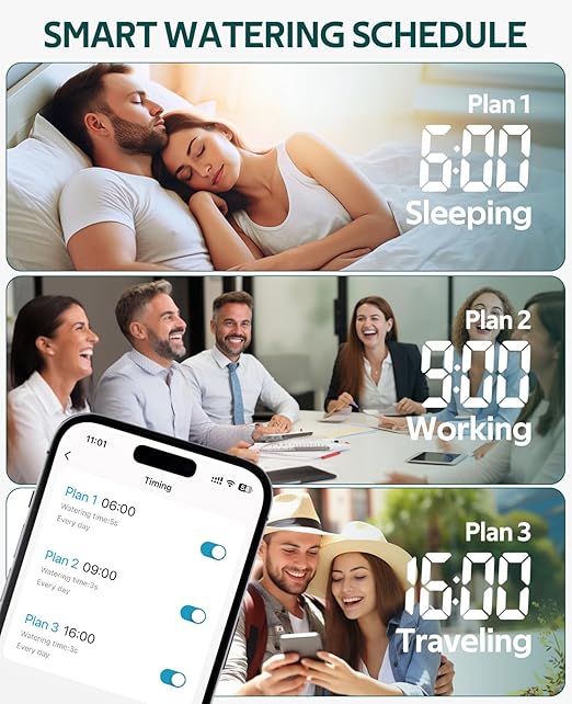 - Real-time Reminder and Water Shortage Alert: This automatic watering system provides real-time reminders and water shortage alerts, so you always know the watering status of your plants. You can set up customized watering plans based on your plants' needs.
