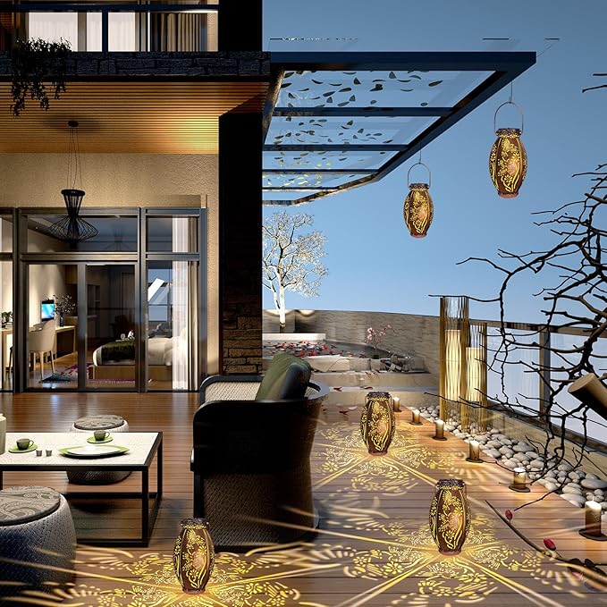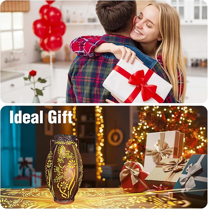 - Gorgeous Design:The outdoor solar lanterns combines vintage copper and exquisite hummingbird hollow patterns. The decorative lantern emits soft golden light at night and displays dynamic and beautiful hummingbird patterns on the table or ground. It is a gorgeous and unique outdoor garden yard decor