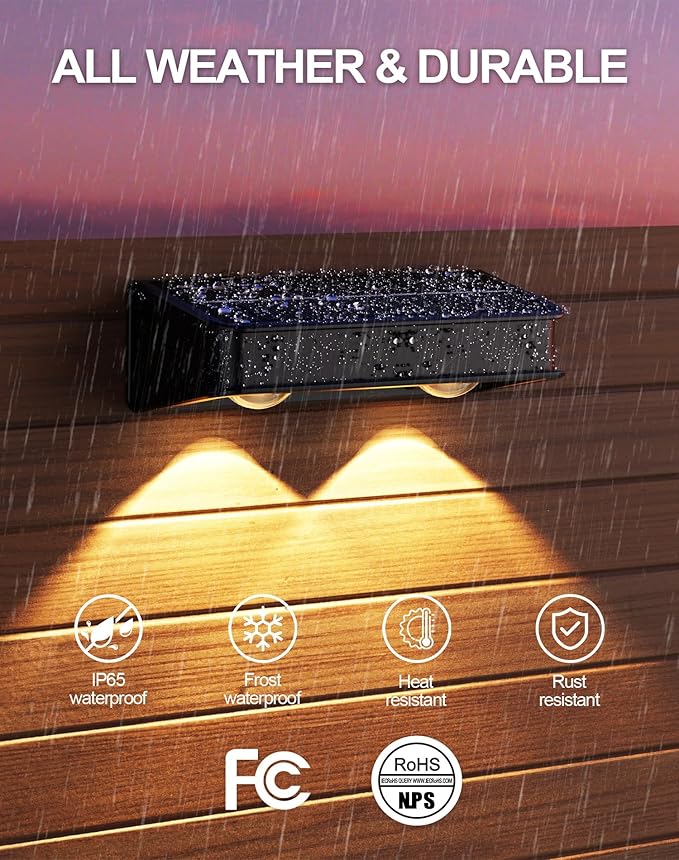 - 【1200mAh Battery & Long Working Time】We equipped the outdoor solar wall lights with a built-in 1200 mAh battery, which supports each outdoor solar light to light up continuously for more than 15 hours, and can guarantee the battery durability to meet the daily use of most families.