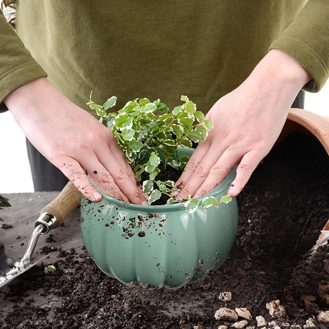- African Violet Ceramic Planter – Functional and Stylish: This dual-layer self-watering ceramic planter is designed for African violets. Its unique pumpkin shape adds a creative touch to your space, perfectly combining decoration with practicality. An ideal choice for indoor flower pots, this planter makes a stylish addition to any home or office décor