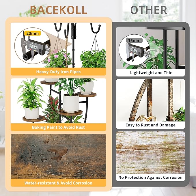 - 【Easy To Assemble】 No complicated installation required. We offer you all tools may need, including screwdriver and small wrench. Explicit instruction will help you put the plant stand indoor tall together easily. In addition, we also equipped with furniture straps. If you have children and pets, you can install them on the hanging plant holder to against tipping.
