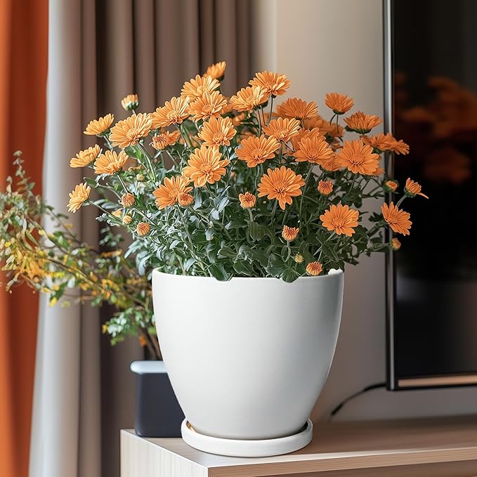 - Plant Pots with Drainage Holes and Saucers: The drainage holes can effectively remove excess water from the ceramic planter to avoid root rot; while the ceramic plant tray can catch excess water seeping out from the bottom of the ceramic flower pot to keep the home environment tidy