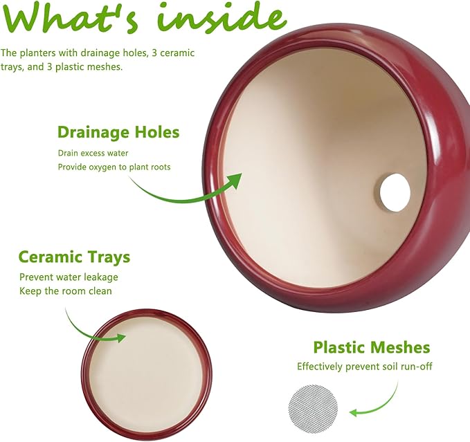 - Durable Ceramic: These ceramic planters are made of durable ceramic forged at high temperatures for durability. The surface of red plant pots is made of smooth glaze, which is very easy to clean