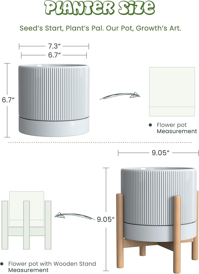 - Complete set includes - Ceramic pot with drainage, saucer, plug, drainage net & beech stand. Well packaged to prevent damage.