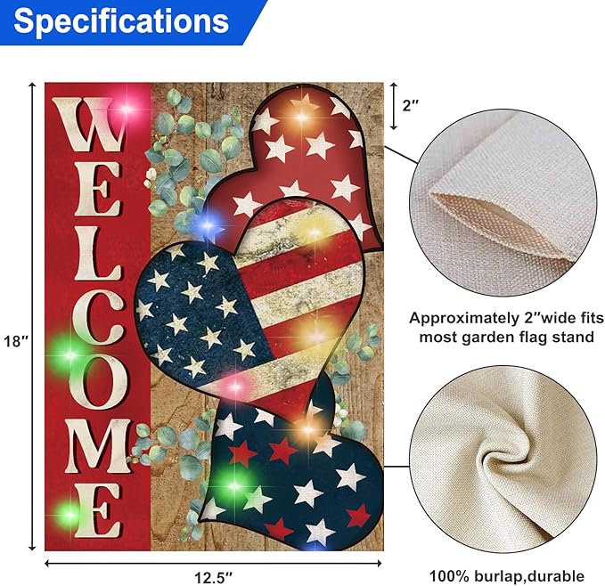 - Seasonal Yard Flag Size: This LED yard flag size is 12 x 18 Inches, available for any deck, patio, porch, or veranda Outdoor Yard house Decorations. With about 2.0 inch wide hanging sleeve, our garden flags 12x18 double-sided are easy to install and fit all standard garden flag poles, flag pole brackets stands and hangers, etc. (stand not included). Make stunning decorative statements for your backyard, lawn, or garden.