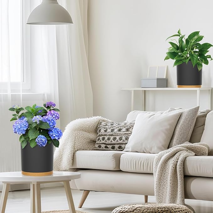 - 【Depth & Large】 8 inch indoor plant pot with Dia: 8 in, Height: 7.8 in, tall plant pots with black with brown provide enough space to accommodate a variety of plants, offering flexibility for small to medium-sized greenery and flowers