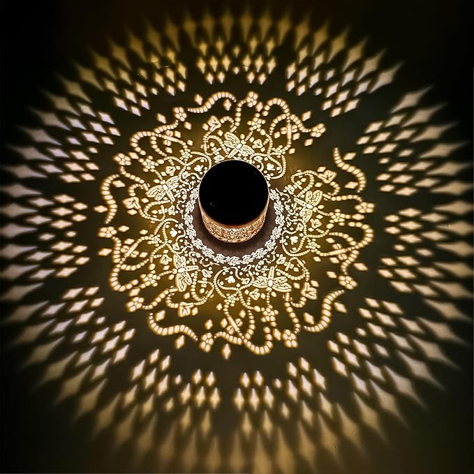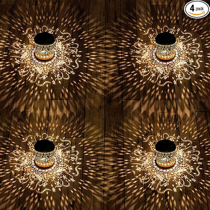 - 【Dragonfly Garden Decoration】The solar outdoor lantern is inspired by animal elements in nature. It projects bright dragonfly patterns in the dark, creating a gorgeous and warm atmosphere and bringing vitality and fun to your garden. It adopts a gold-copper color and hollowed-out metal finish, presenting a retro look.