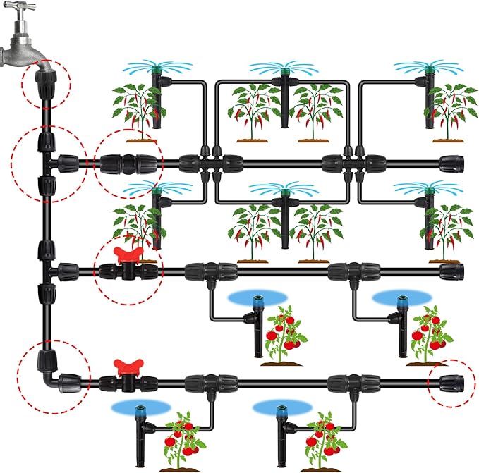 - Widely Used: works great with rain-bird rain-drip 1/2 ”irrigation tubing.Accurate control of water flow. Provide uniform irrigation for plants. Applicable to garden. raised bed. lawn. flower pots .backyard greenhouse .