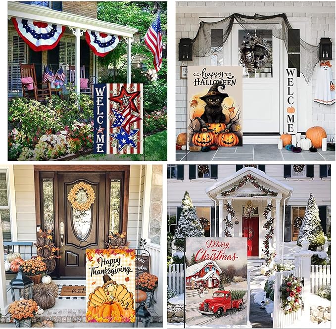 - 1. 【Comprehensive Garden Flag Collection】: Our garden flag set includes all major themes: Spring, Summer, Fall, Winter, Happy new year, Happy Valentines Day, Mardi Gras, St Patricks Day, Easter, Happy Mothers Day, Memorial day, Happy Fathers Day, 4th of July, Happy Labor day, Halloween, Thank you Veterans, Thanksgiving, Home Sweet Home, Birthday, Christmas garden flag. With 20 unique designs, this set caters to a wide range of occasions and seasons, ensuring you’re always prepared.