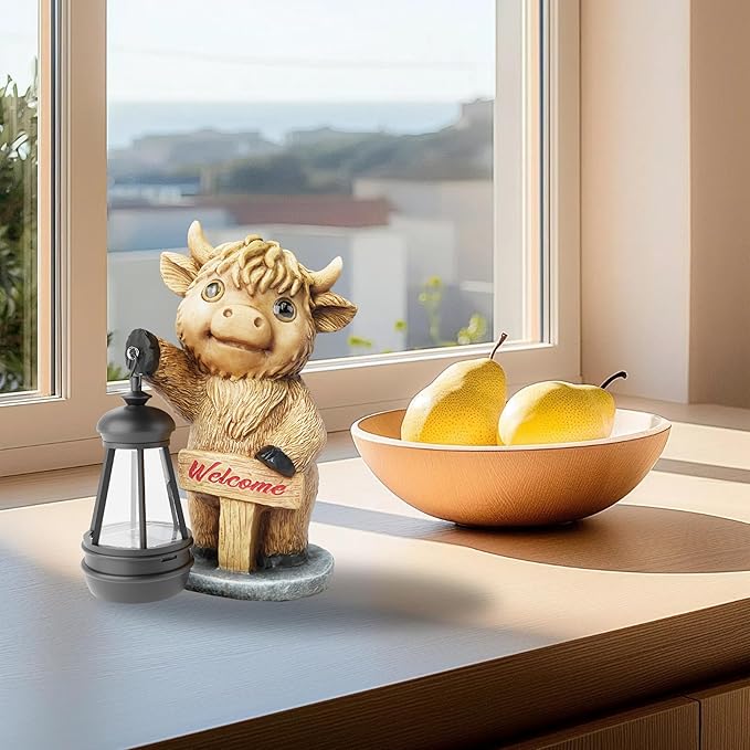 - Wide Application: Highland Cow Outdoor Solar Figurine Lights have a wide range of applicability; you can place them in your front yards, lawns, patios, porches, front steps, balconies, flower beds, stairs, poolside, potted plants, windowsills, or indoors as ornaments.