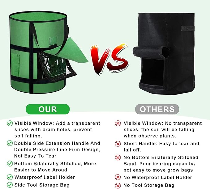 - Premium Planter Material:The 7 gal growing bags made of breathable double layer non-woven fabric, material is heavy duty felt, the potatoes planter bags ensures good ventilation to prevent excessive moisture. Nonwoven fabric means the pots do not retain excess water, allowing your plant roots to breathe for healthier, more vigorous growth, reusable and cause no pollution