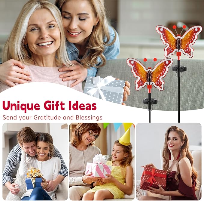 Solar Garden Butterfly Lights, Garden Outdoor Lights Decor, Butterfly Solar neon Light,led Butterfly Lights,Yard Patio Pathway Decoration(Red, 2pack)