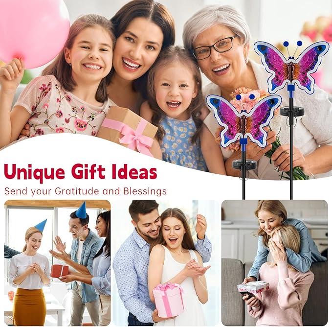 - DESIGN: These solar garden lights are a stylish addition to any landscaping design. Perfect for lining outdoor garden pathways, or as creative highlights for any patio, lawn, or landscaping project. Included are (2) Butterfly Neon stake lights and (2) ground stakes.