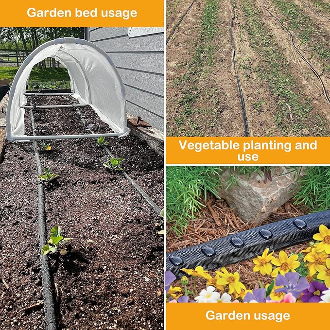 - Save up to 80% of water usage with the Flat Soaker Hose, perfect for precise irrigation of gardens, vegetable fields, and lawns.