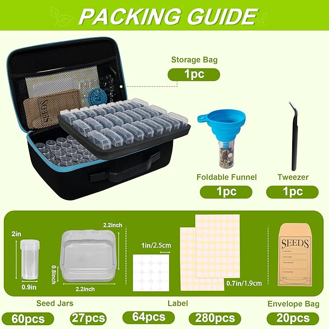 - Effortless Seed Identification: The transparent storage containers offer clear visibility of your seeds. With the included label stickers and envelopes, you can easily categorize and access different seed types without hassle