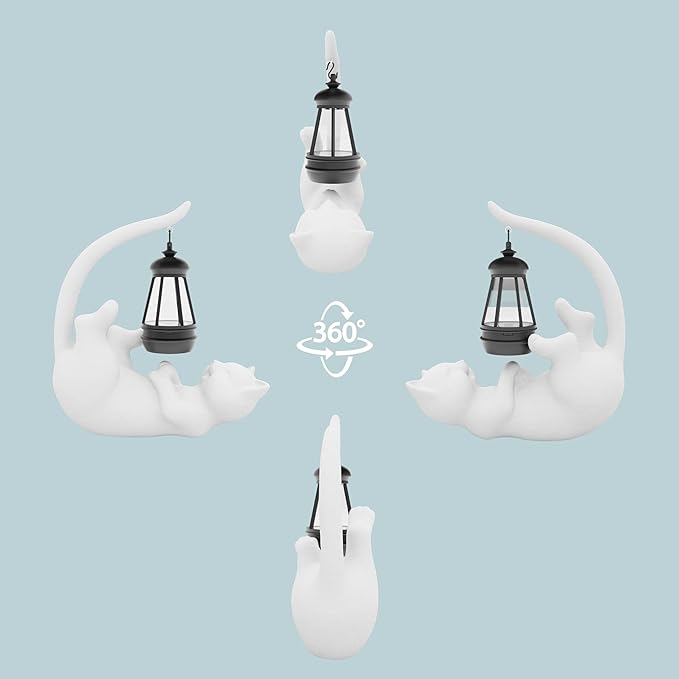 Solar Cat Garden Statue 15 Inch Porch Patio Decor for Outside Yard Decoration Outdoor Unique Housewarming Gardening Birthday Gifts for Cat Lovers Women Grandma