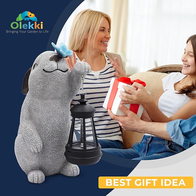 Solar Rabbit Statues for Garden Decor - Outdoor Bunny Figurine with Solar Lantern for Yard Patio Lawn Balcony Ornaments - Garden Gifts for Mothers Day, Grandma, Easter