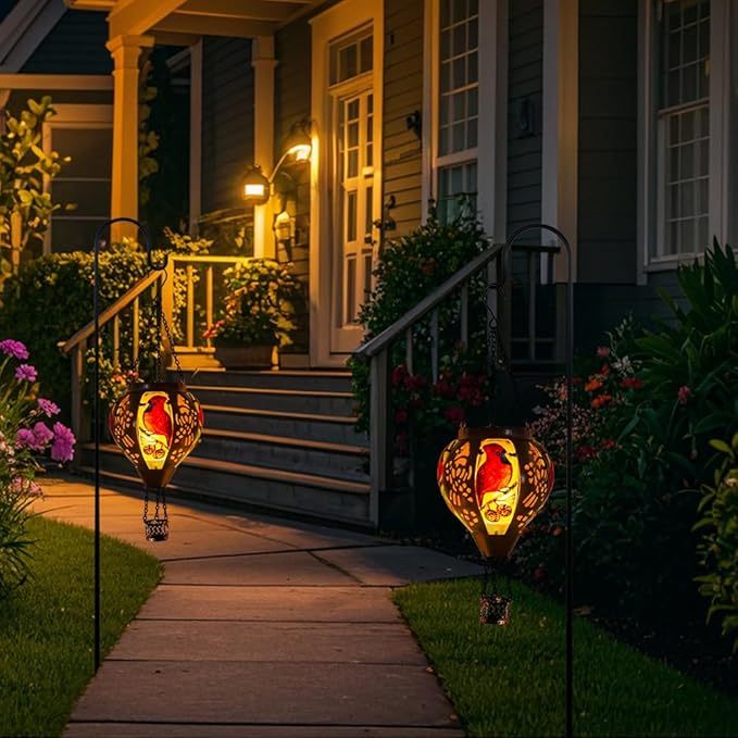 - Widely Applicable: This cardinals lantern can be hung on trees, pergolas, or porch beams to create a magical atmosphere in gardens, paths, or outdoor gathering spaces. Bring fairy tale charm to your outdoor space with hanging solar lights.